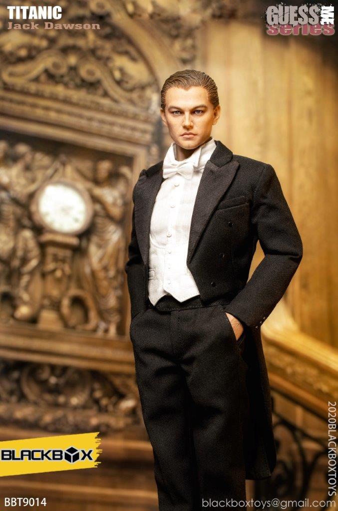 1) TUXEDO2) PLEATED-FRONT TUX SHIRT3) PIQUE VEST4) BOW TIE.5) HEAD SCULPTURE ” JACK ”6) BODY W/ RELAXED HANDS7) DRESS SHOES