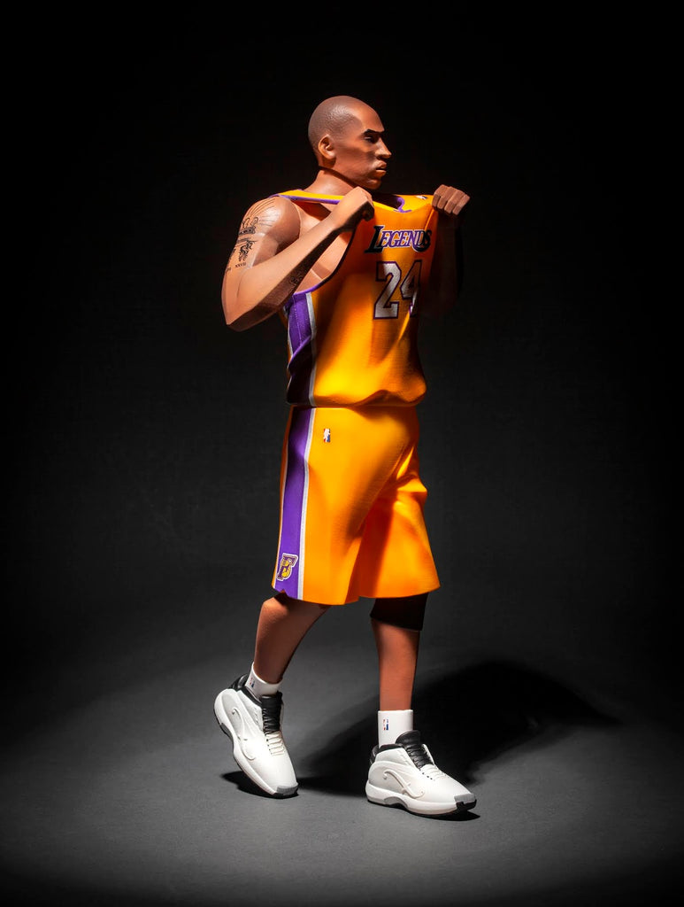 Fools Paradise's new Legend // EightTwoFour set celebrates the career of the late Kobe Bryant with a pair of 1/6 scale figures. Clad in a road jersey, ‘Eight’ honors the early days of the Black Mamba. Rocking a home jersey, ‘TwentyFour’ pays homage to the second half of the NBA legend’s career with shaved head instead of the afro and true-to-life tattoos.