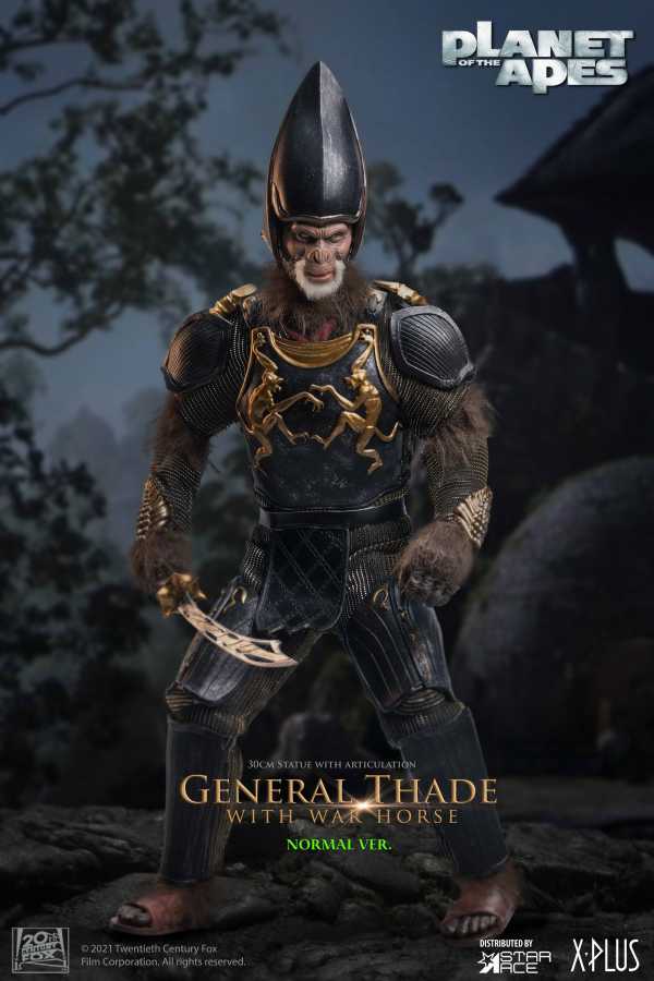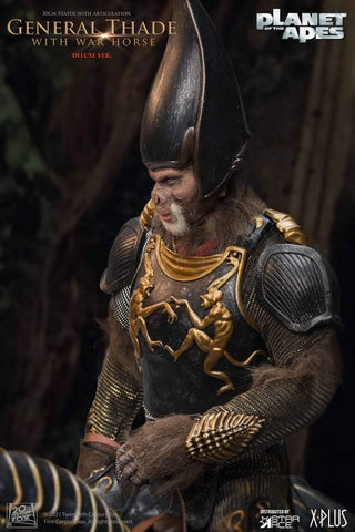 This polyresin statue of Thade has a fabric costume and fur accents under his armor with a faux fur beard. It is articulated at the shoulders and neck for limited posability and stands 30cm tall. It features a detailed, authentic likeness to Thade in the film and is meticulously hand painted.