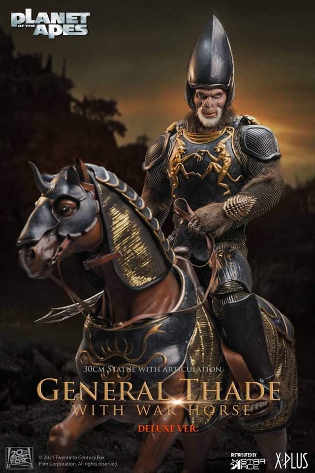 The evil soldier ape is available standing on his own or sitting astride his fully equipped war horse with removeable saddle and bridle.