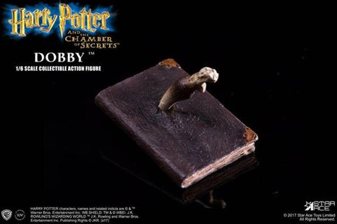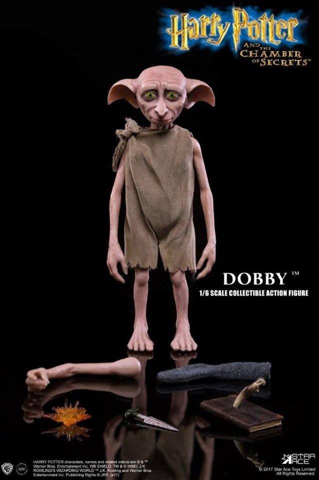 THE 1/6TH SCALE DOBBY COLLECTIBLE FIGURE FEATURES: - 1/6TH SCALE BODY APPROXIMATELY 15 CM TALL - FULLY REALIZED AUTHENTIC LIKENESS OF DOBBY IN THE MOVIE OF "HARRY POTTER AND THE CHAMBER OF SECRETS" - WITH ACCURATE FACIAL EXPRESSION AND DETAILED SKIN TEXTURE - EACH HEAD SCULPT IS SPECIALLY HAND-PAINTED 1. THREE (3) SETS OF INTERCHANGEABLE ARMS INCLUDING: - ONE (1) LET ARM WITH OPEN HAND - ONE (1) RIGHT ARM WITH OPEN HAND - ONE (1) RIGHT ARM WITH SPARKLING FLASH 2. COSTUME : - ONE (1) TOM PILLOW CASE 3. ACCESSORIES: - ONE (1) BELLATRIX LESTRANGE'S DAGGER - ONE (1) GREY SOCK - ONE (1) TOM RIDDLE'S DIARY - ONE (1) BASILISK TOOTH - ONE (1) SPARKLING FLASH